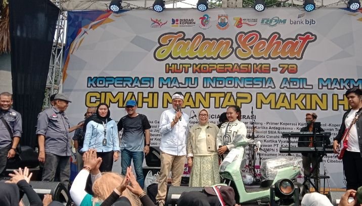 Cimahi, Sabtu 12 Juli 2025 – Semarak peringatan Hari Ulang Tahun (HUT) Koperasi ke-78 digelar dengan meriah di Kota Cimahi, mengusung tema “Koperasi Maju, Indonesia Adil Makmur”. Acara yang berlangsung di Cimahi Techno Park, dimeriahkan dengan berbagai kegiatan, seperti jalan sehat, senam massal, lomba mewarnai, defile, bazar UMKM, dan beragam lomba yang mampu menarik ratusan peserta, termasuk perwakilan dari KSP. CU Karsa Kencana Mitra Sejahtera (KKMS).